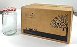 Foodgrade, durable glass. Gold twistoff lids. Cheap. Each jar com…~