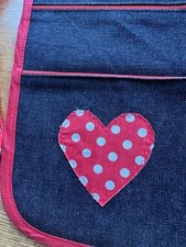 Good new. Denim material red. Little used. Heart appliqué…~