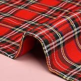 Quality plaid check · a pattern reported as plaidcheck · A width equivalent to "58" 147cm wide" · A weave defined as "plain strong and tight" · A colour : "various please choose" · A material : polyester ¬